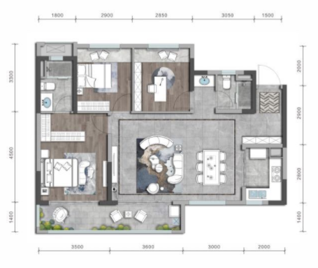 3室2厅1厨1卫 建面86m²