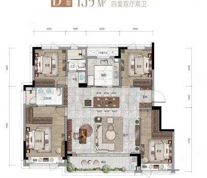 4室2厅2厨1卫 建面139m²