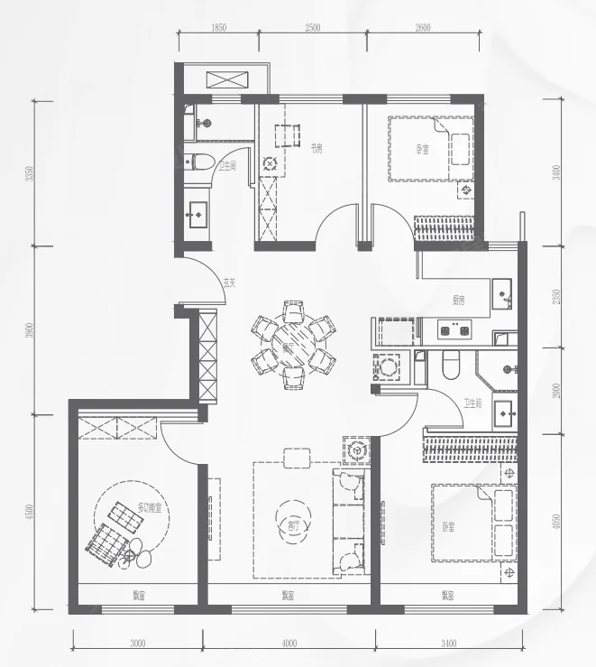 3室2厅1厨1卫 建面85m²