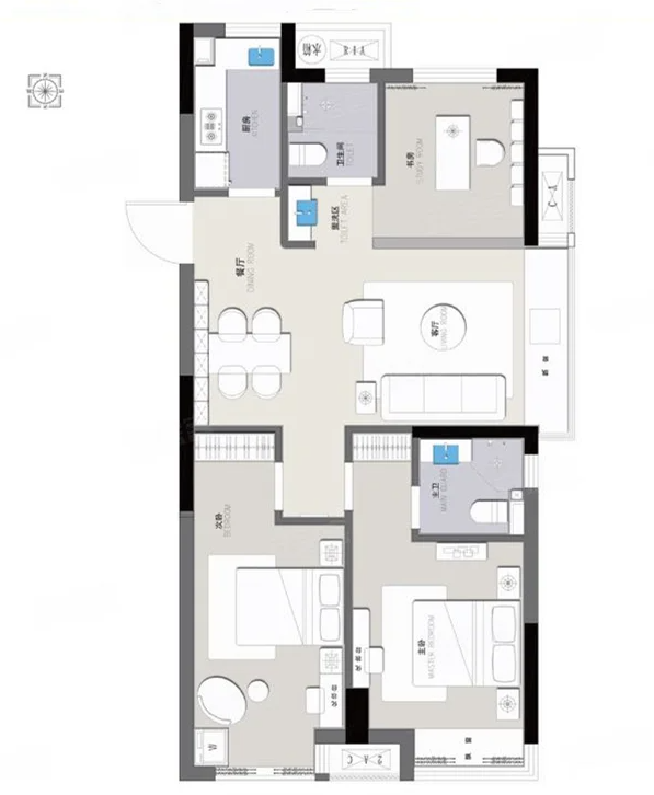 3室2厅2厨1卫 建面87m²