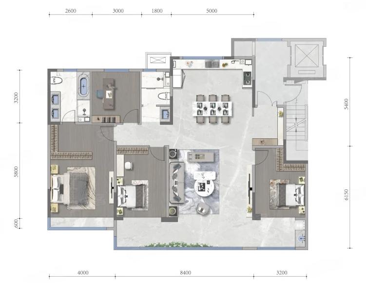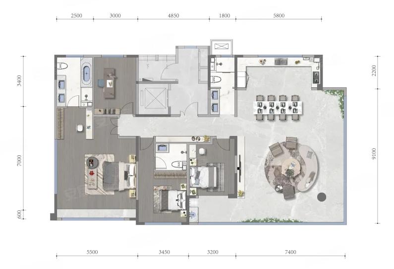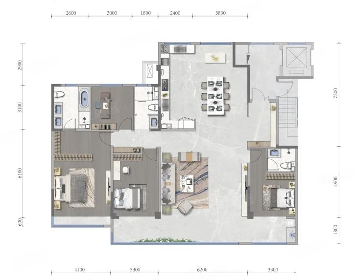 4室2厅3厨1卫 建面220m²