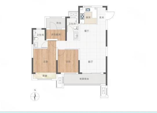 2室2厅2厨1卫 建面89m²