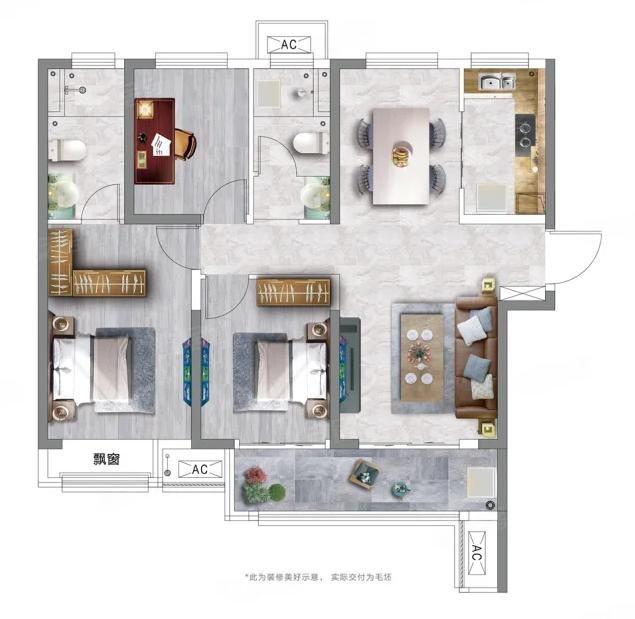 3室2厅1厨1卫 建面89m²