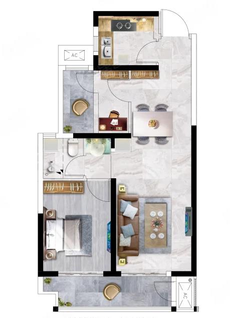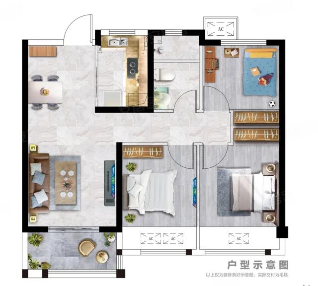 2室2厅1厨1卫 建面80m²