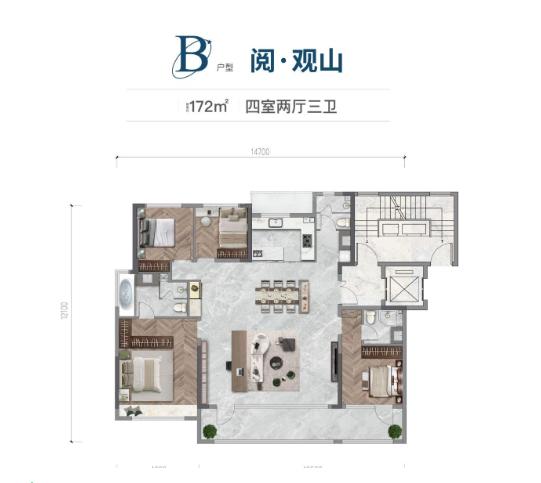 4室2厅3厨1卫 建面172m²