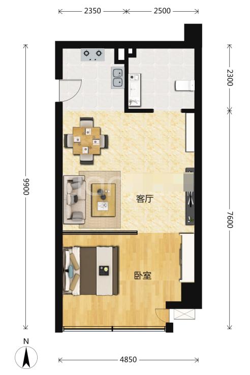 1室1厅1厨1卫 建面48m²