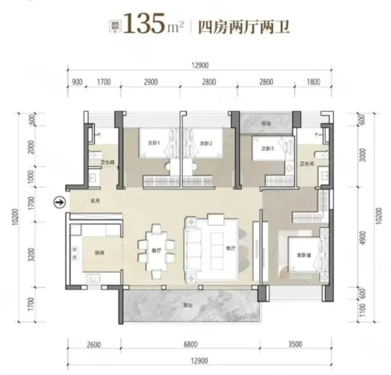 4室2厅2厨1卫 建面135m²