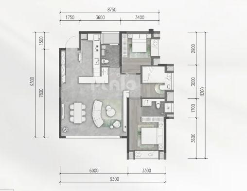 3室2厅2厨1卫 建面90m²