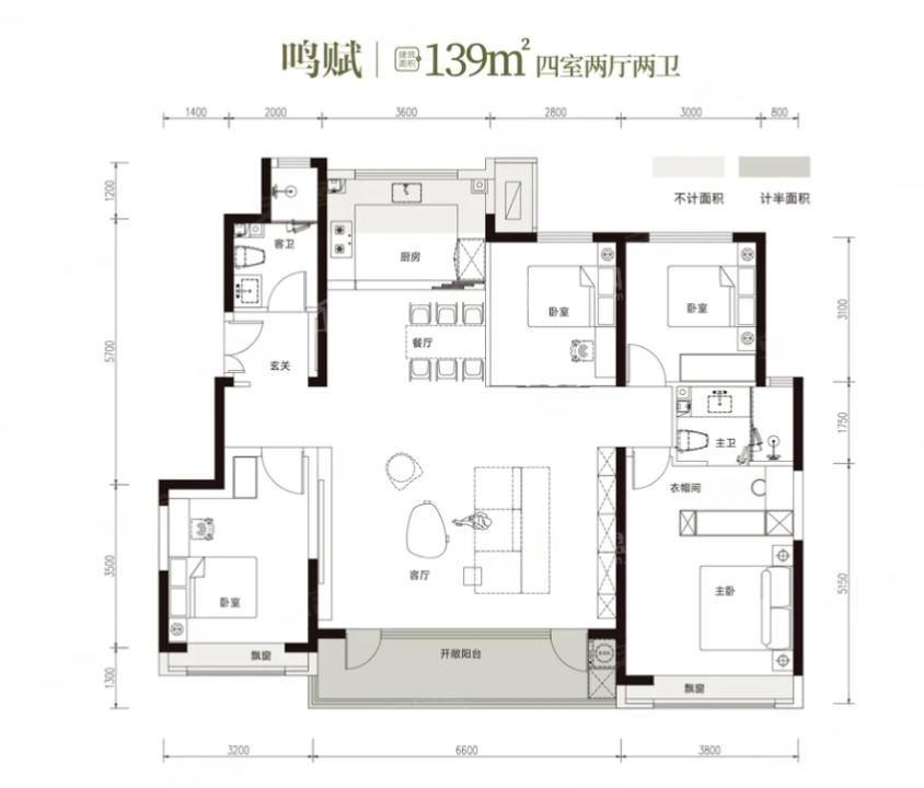 4室2厅2厨1卫 建面139m²