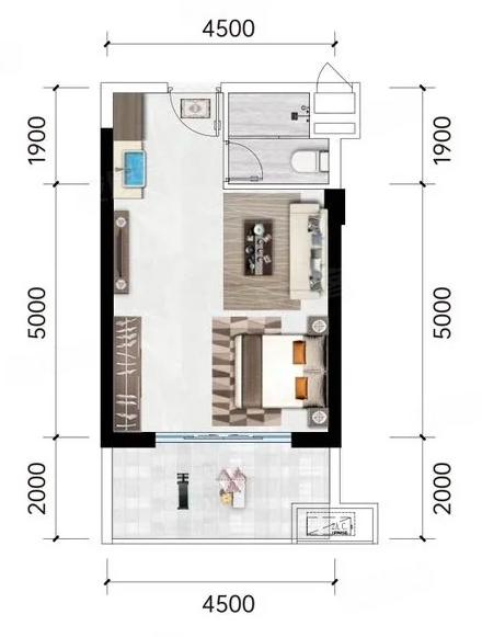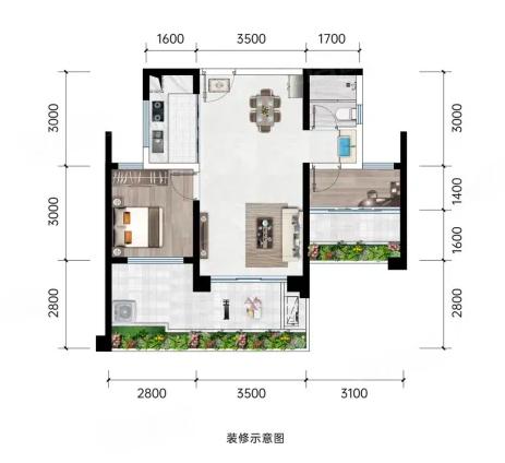 1室1厅1厨1卫 建面48m²