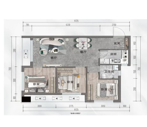 3室2厅1厨1卫 建面98m²