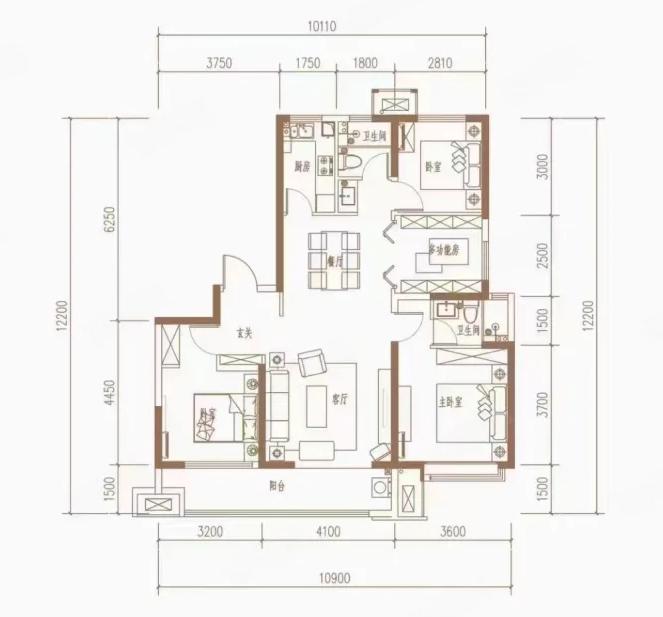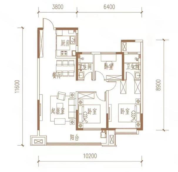 117,户型居室:【3室2厅1厨2卫】,建筑面积:【117平方米】