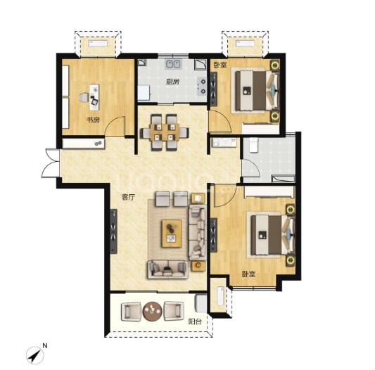 3室2厅1厨1卫 建面92m²