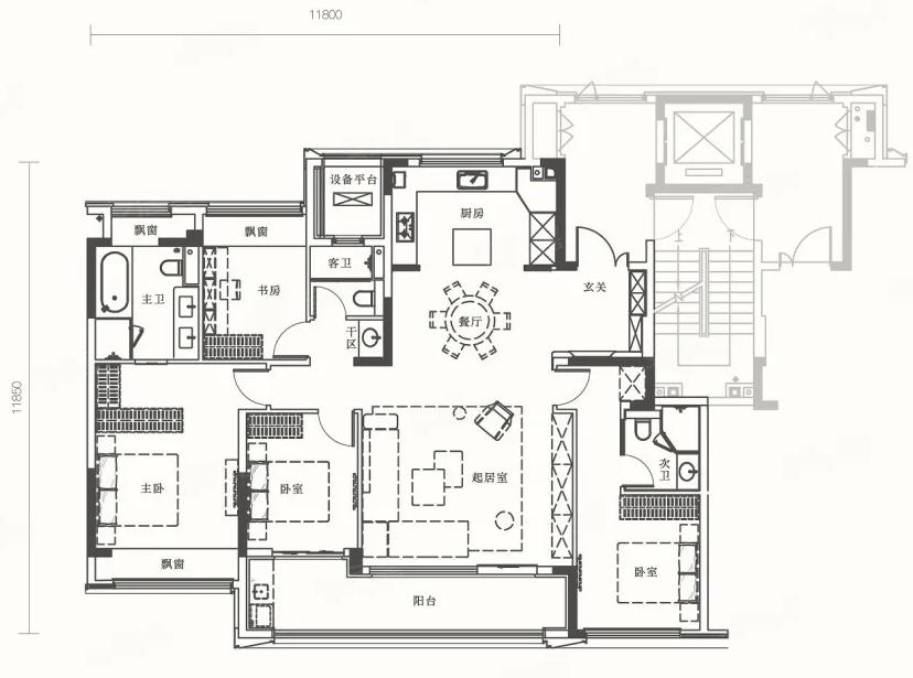 4室2厅3厨1卫 建面178m²