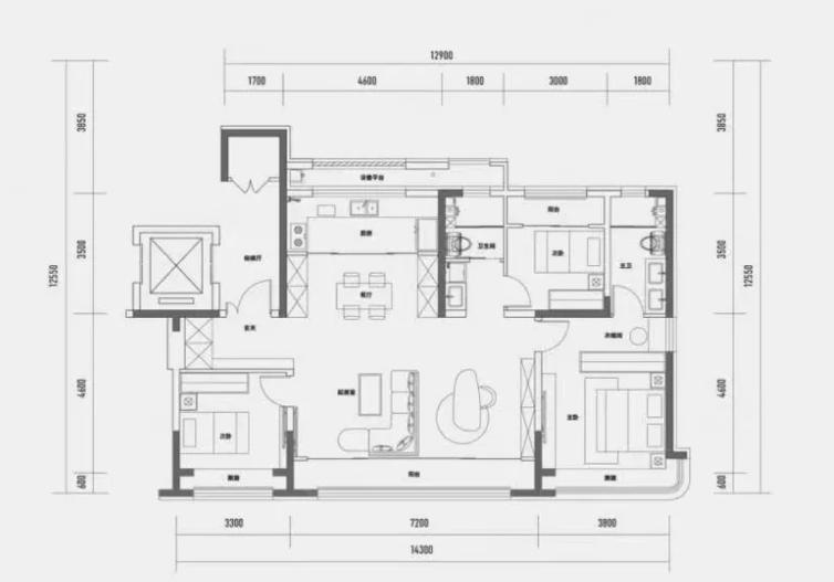 户型方正,活动区域宽阔,居住...