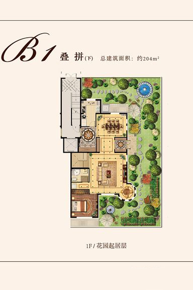 B1户型(一层),户型居室:【1室1厅1厨1卫】,建筑面积:【204平方米】