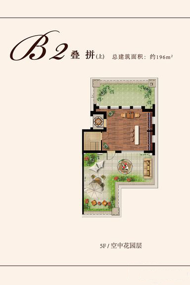 B2户型(三层),户型居室:【4室3厅1厨3卫】,建筑面积:【196平方米】