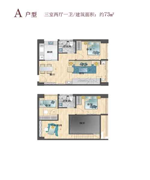 3室2厅1厨1卫 建面73m²