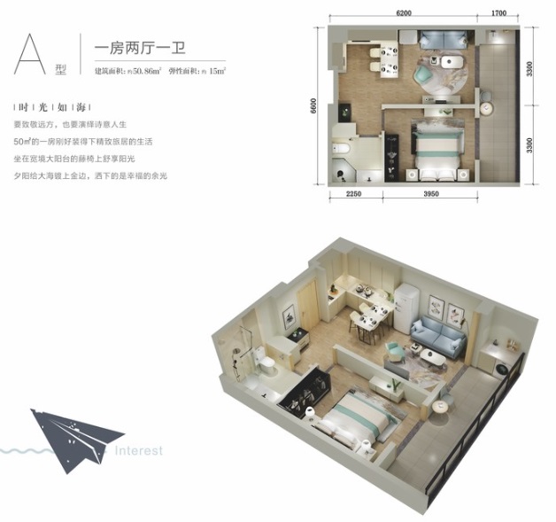 A,户型居室:【1室2厅1厨1卫】,建筑面积:【50平方米】
