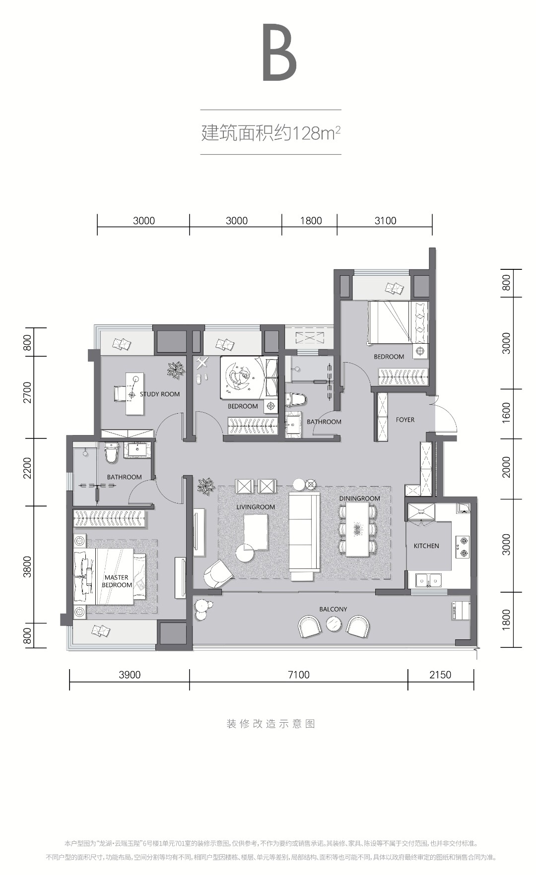 3室2厅1厨2卫 建面118m²