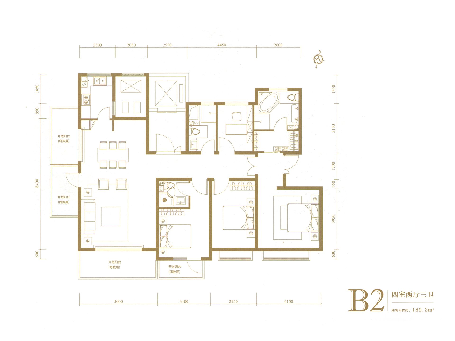4室2厅3卫,户型居室:【4室2厅1厨3卫】,建筑面积:【189平方米】