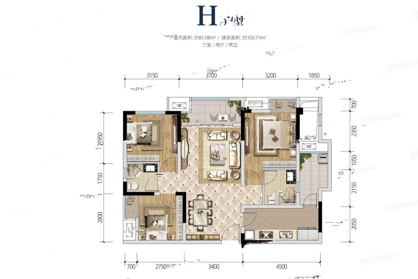 3室2厅2卫,户型居室:【3室2厅2厨1卫】,建筑面积:【104平方米】