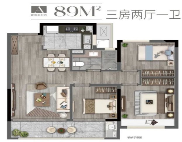 89,户型居室:【3室2厅1厨1卫】,建筑面积:【89平方米】