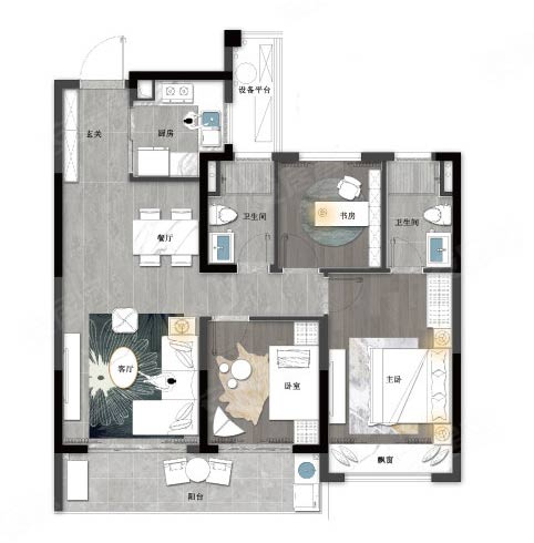 103,户型居室:【3室2厅1厨2卫】,建筑面积:【103平方米】