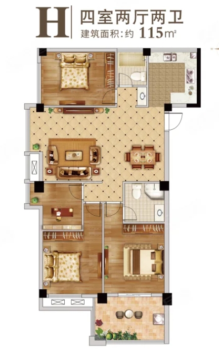 4室2厅2厨1卫 建面115m²