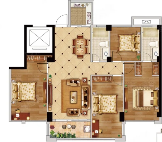 4室2厅2厨1卫 建面120m²