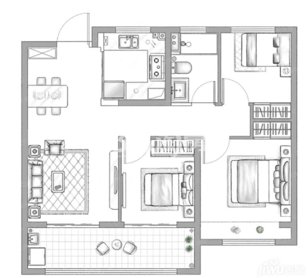 3室2厅2厨1卫 建面106m²