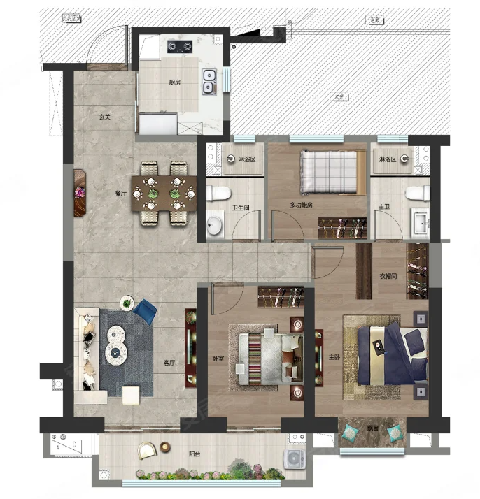 132,户型居室:【3室2厅1厨2卫】,建筑面积:【132平方米】