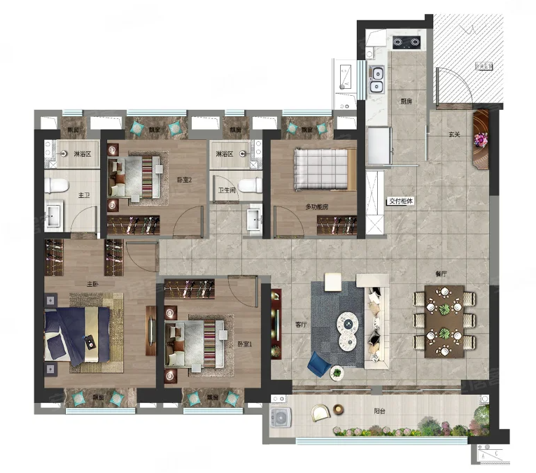 164,户型居室:【4室2厅1厨2卫】,建筑面积:【164平方米】