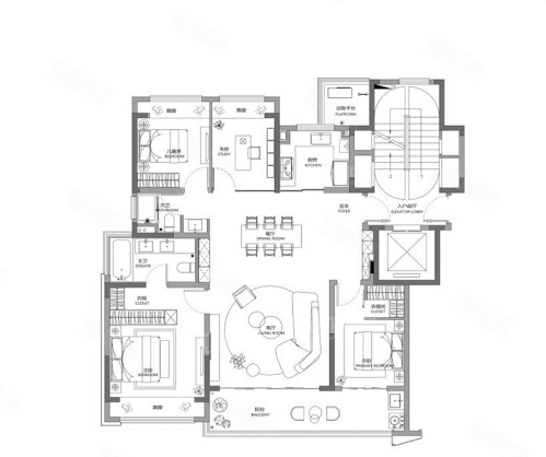 4室2厅3厨1卫 建面204m²