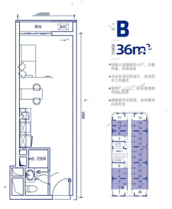 B,户型居室:【1室1厅1厨1卫】,建筑面积:【36平方米】
