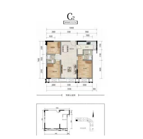 2室2厅2厨1卫 建面92m²