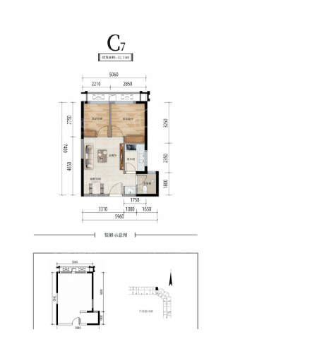 2室1厅1厨1卫 建面52m²