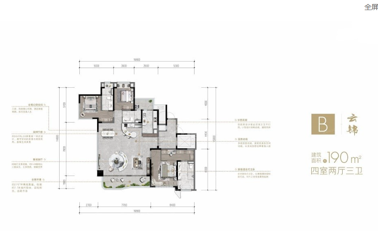 C,户型居室:【4室2厅1厨3卫】,建筑面积:【190平方米】