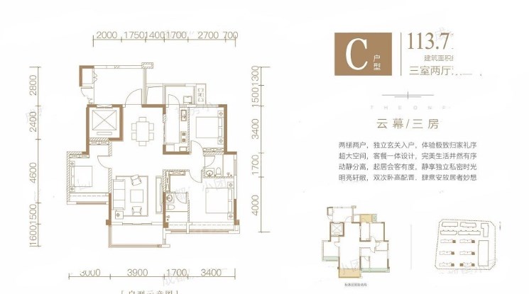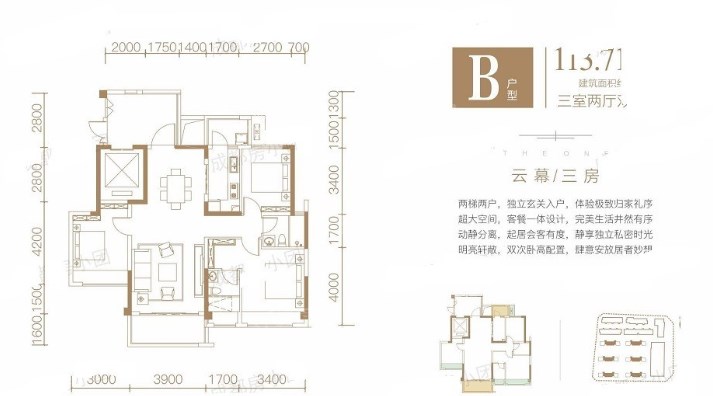 3室2厅2厨1卫 建面113m²