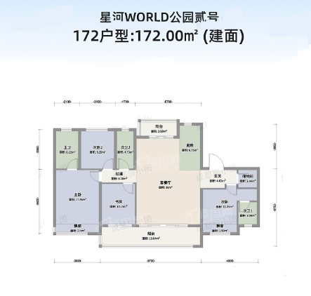 4室2厅3厨1卫 建面172m²