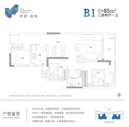 3室2厅1厨1卫 建面85m²