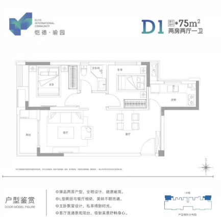 2室2厅1厨1卫 建面75m²