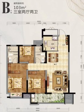 3室2厅2厨1卫 建面103m²