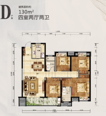4室2厅2厨1卫 建面130m²