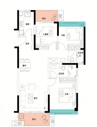 3室2厅2厨1卫 建面111m²
