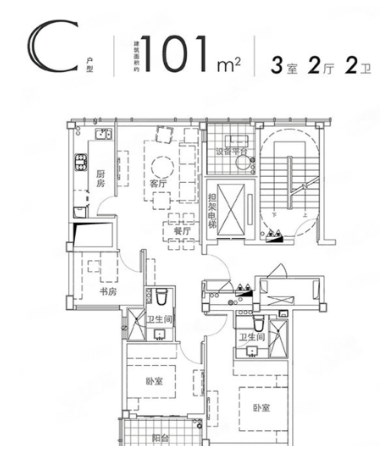 3室2厅2厨1卫 建面101m²