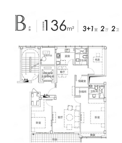4室2厅2厨1卫 建面136m²