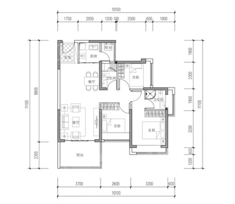 110,户型居室:【1室2厅1厨1卫】,建筑面积:【110平方米】