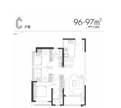3室2厅2卫,户型居室:【3室2厅1厨2卫】,建筑面积:【96平方米】