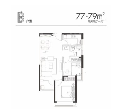 2室2厅1卫,户型居室:【2室2厅1厨1卫】,建筑面积:【77平方米】